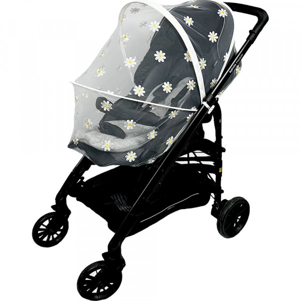 데이지 자수 지퍼형 유모차 모기장, 1개, 아이보리