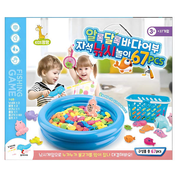 키즈팡팡 알록달록 바다어부 자석 낚시놀이 67pcs, 혼합색상, 1개[14,230원]