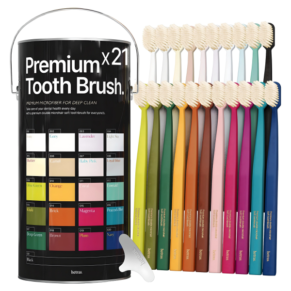 헤트라스 파스텔 프리미엄 스케일링 이중 미세 탄력모 칫솔, 21개입, 1세트