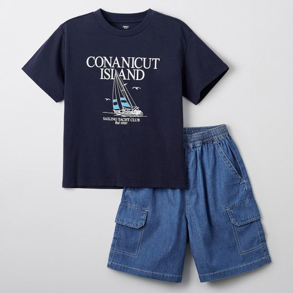 스파오 아동용 COOL 상의 + 데님 쇼츠 세트