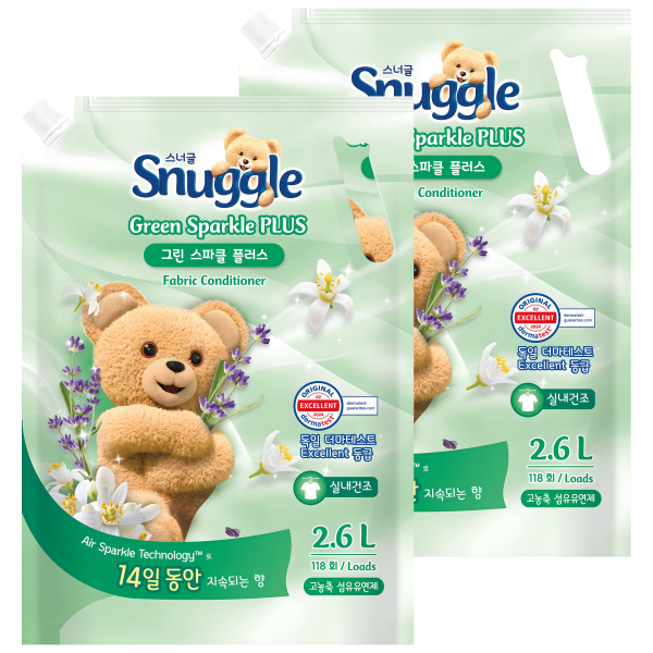 스너글 그린 스파클 플러스 섬유유연제 리필, 2.6L, 2개 구경하러가기