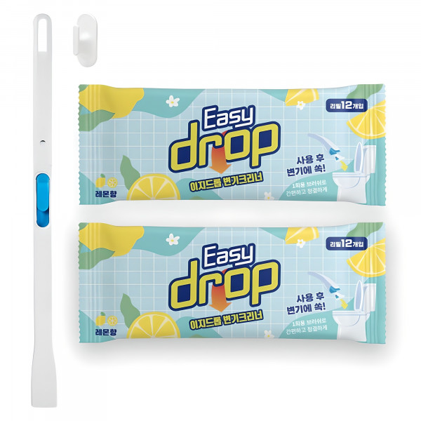이지드롭 변기크리너 레몬향 리필 브러쉬 24개입 + 핸들 + 전용 고리, 혼합색상, 1세트[9,380원]