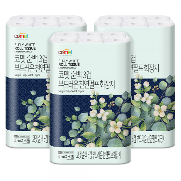 코멧 순백 3겹 부드러운 천연펄프 화장지 30m