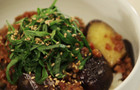 된장, 소보로를 함께 비빈 후 먹으면 된다✧・゚ 가지된장덮밥을 주문하면 다시마 식초가 같이 나오는데 덮밥을 어느 정도 먹다가 다시마 식초를 넣어서 먹으면 색다른 맛으로 즐길 수 있다고 하셨다ෆ...