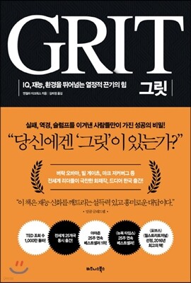 할 도서 전 세계 리더들과 언론이 주목한 새로운 성공의 패러다임, 그릿 GRIT 의 비밀을 최초로 밝혀낸 책 @ 2016 IQ 재능 환경을 뛰어넘는 열정적 끈기의 힘 그릿 죽을 만큼의 시련이 사람을 강하게 만들지만...