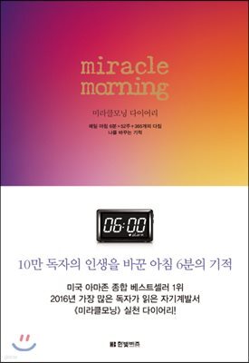 아마존 종합 베스트셀러 1위2016년 가장 많은 독자가 읽은 자기계발서『미라클모닝』 실천 다이어리10만 독자에게 잃어버린 아침을 찾아준 『미라클모닝』은 수십 개의 커뮤니티를 자생적으로 발생시킬 정도로 전국에 ‘아침형 인간’ 열풍을 불러일으켰다. 또한 47만 명이 구독하고 있는 페이스북 페이지 [열정에 기름붓기...