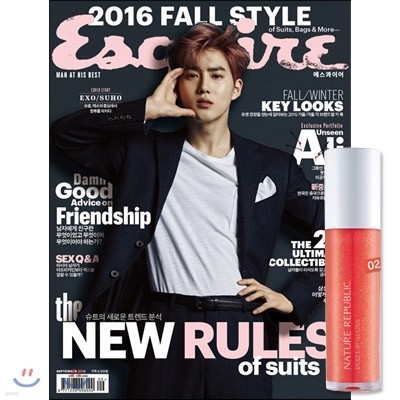 [잡지] ESQUIRE 에스콰이어 (월간) : 9월 [2016](예스24단독 부록 : 네이처 리퍼블릭 립글로스(색상 랜덤), 주요기사 : 엑소 수호) (6,170원) ▶ 해당 상품 바로 가기 ◀
