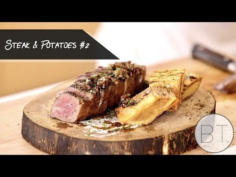 10 oz striploin seared and basted with butter and aromatics, crispy fried potato stacks salted to perfection, sweet and sour bacon gastrique, creamy ...