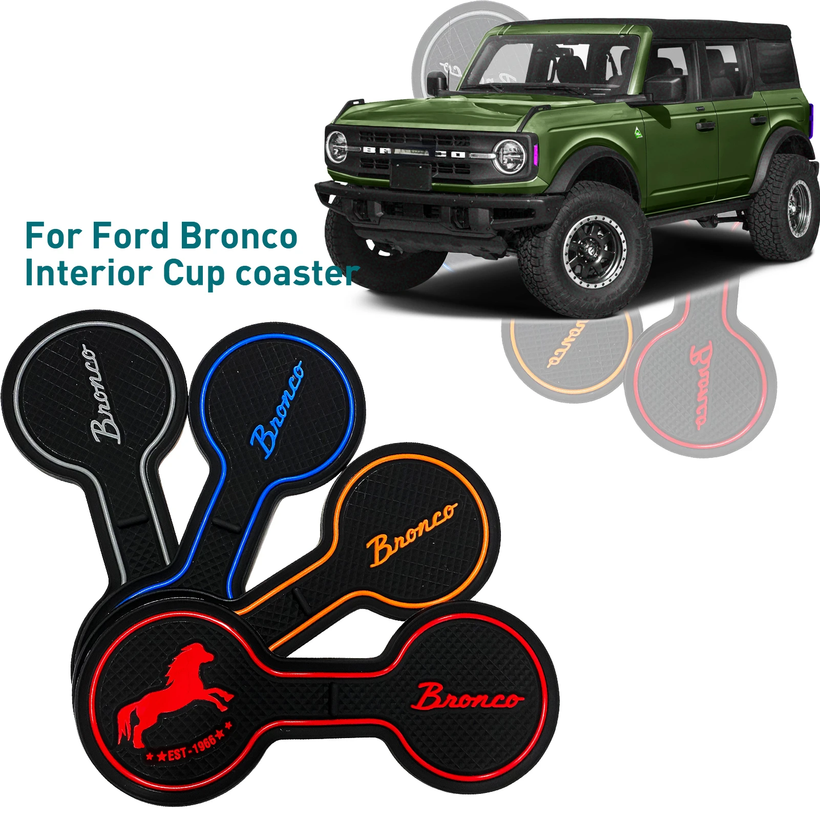 포드 브롱코 자동차 컵 코스터, 2020 2021 2022 소프트 드링크 컵 거치대 미끄럼 방지 패드, 데일리 인테리어 액세서…