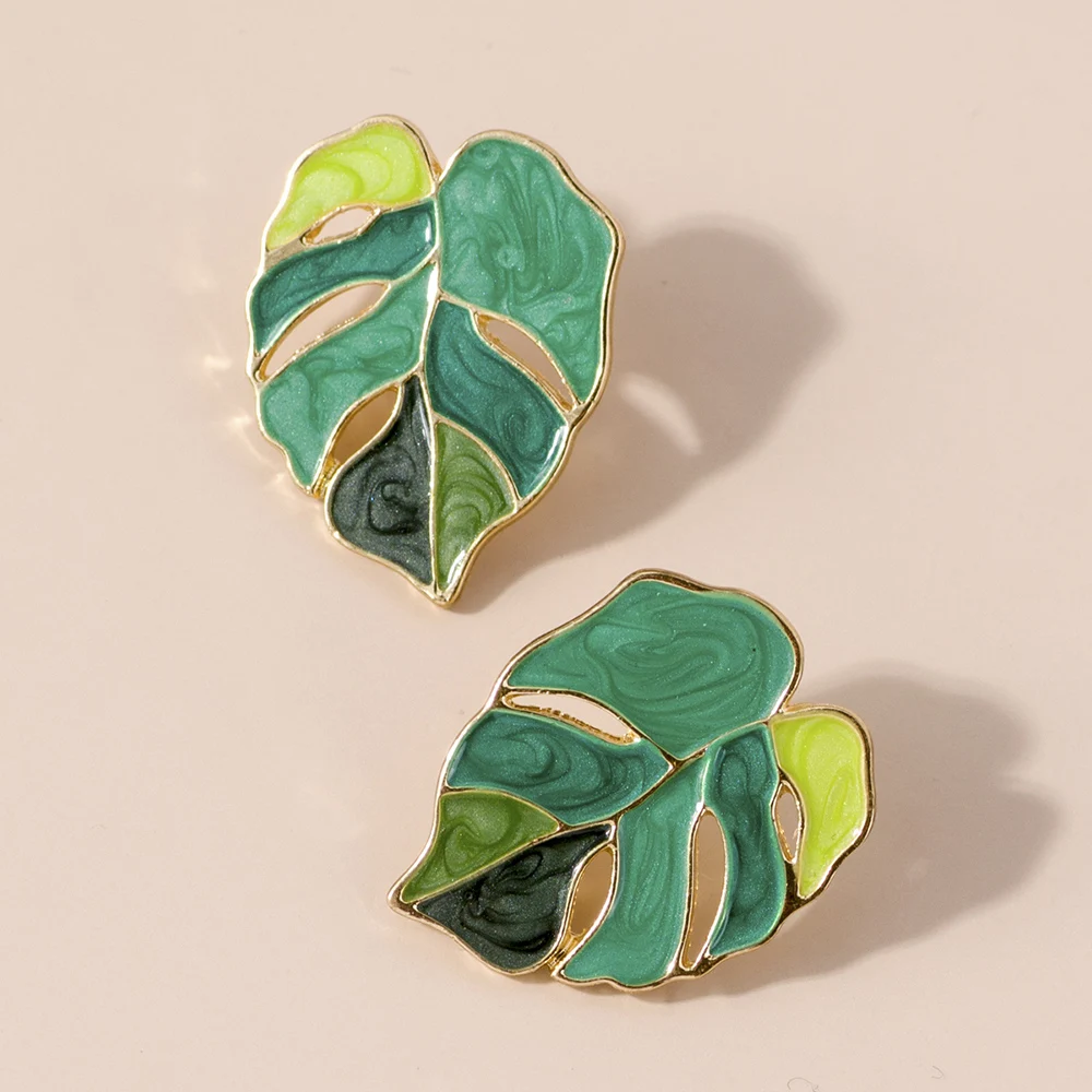 여성용 로스트 레이디 식물 녹색 잎 에나멜 드롭 귀걸이, 봄 패션 스테이트먼트 귀걸이, 도매 쥬얼리, 파티 선물 비쥬