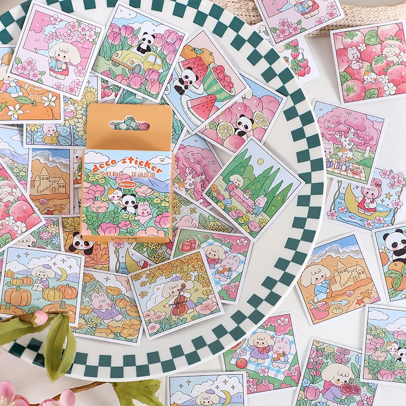 카와이 만화 스틱 라벨 스티커 미적 스크랩북 일기 앨범 문구 스티커 저널 노트북 46 개 [4,654원]