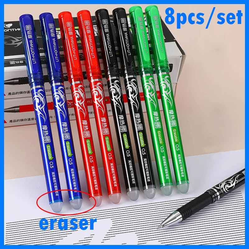 지울 수 있는 젤 펜, 총알 팁, 블루, 블랙, 레드 잉크 리필 막대, 8 가지 색상, 쓰기 그림, 세척 가능한 핸들, 0.5mm, 세트당 8 개