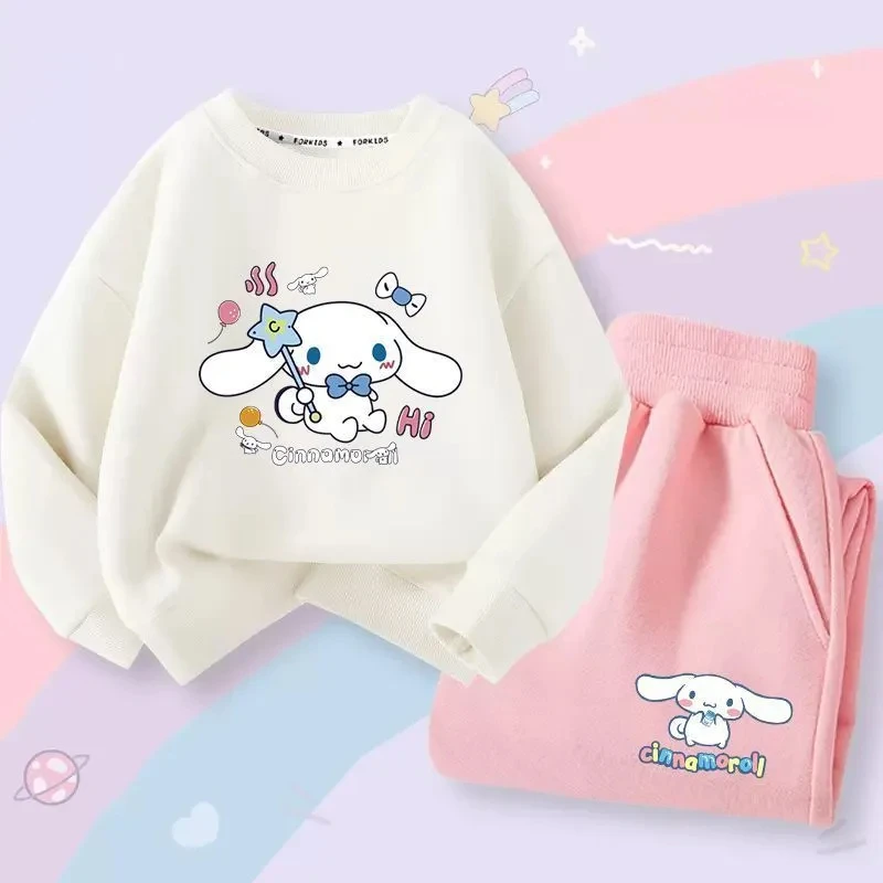 산리오 시나모롤 어린이 운동복 귀여운 애니메이션 용수철, 가을 캐주얼 맨투맨 후드 바지, 귀여운 소녀 의류, 2 개 세트