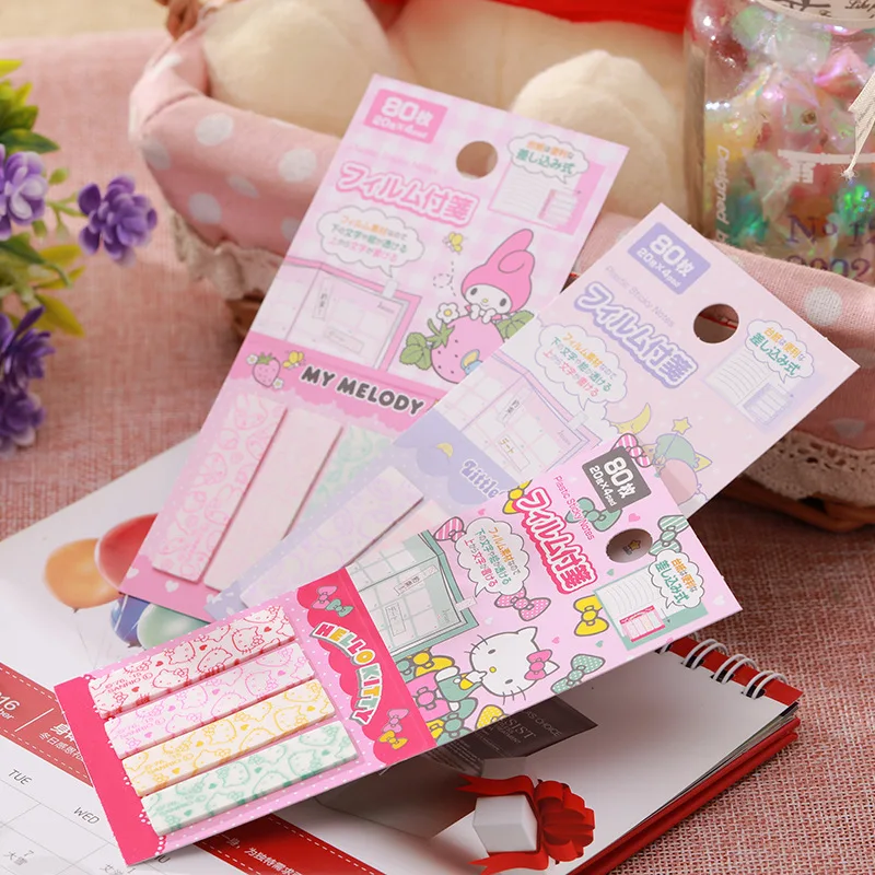 헬로 키티 산리오 소매 인덱스 스티커, 애니메이션 카와이 멜로디 트럼펫, 직사각형 스티커, 메모 태그 스티커, 문구 선물, 80 개