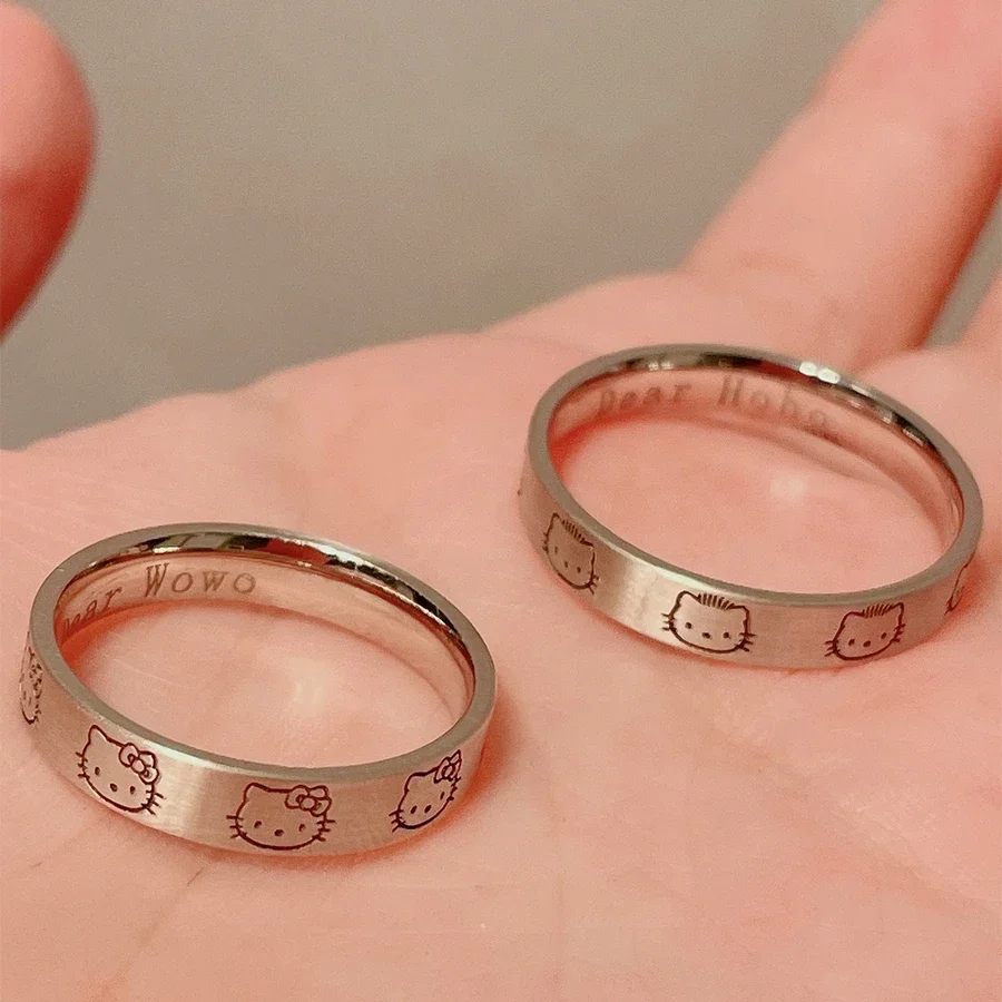 산리오 귀여운 반지 애니메이션 캐릭터 시리즈, 헬로 키티 쿠로미 커플 실버 반지, 패션 조정 가능한 반지 액세서리, 어린이 선물