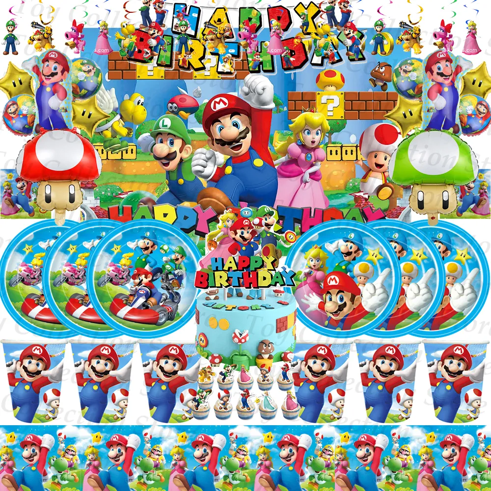 마리오드 어린이 생일 파티 장식 파티 식기 풀 세트, 테이블 액세서리, 컵 플레이트, 축제 DIY 선물, 베이비 샤워