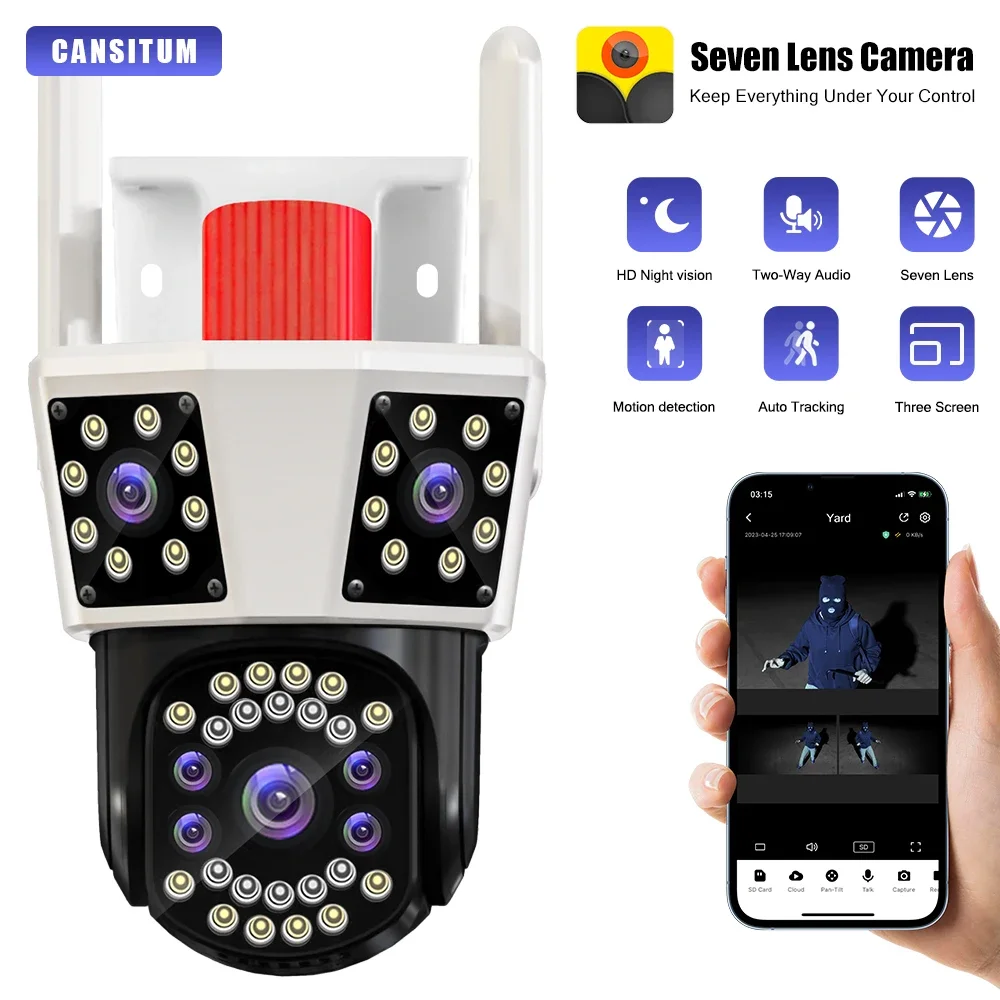CANSITUM 3 화면 와이파이 IP HD 야외 카메라 PTZ, 8 배 줌, 3 렌즈, 3 화면 CCTV 비디오 카메라, 보안 보호 구경하러가기
