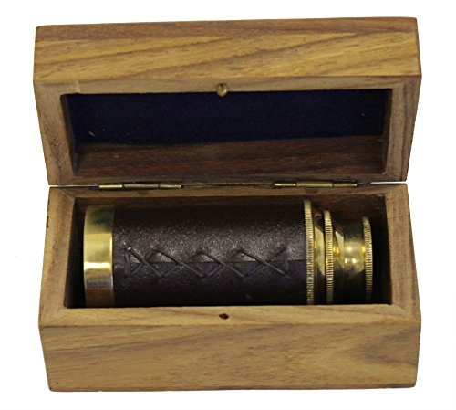 6" Handheld Brass Telescope with Wooden Box - Pirate Navigation …