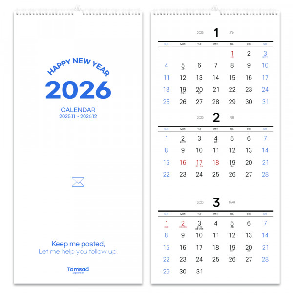 탐사 오피스 2026 베이직 벽걸이 달력 월 캘린더 3단 3개월 체크[9,690원]