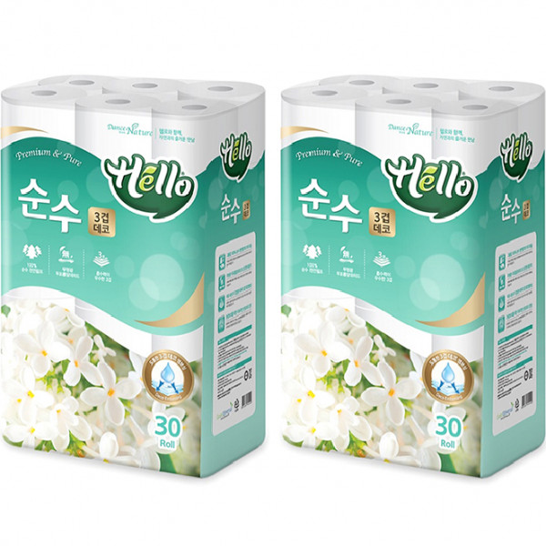 헬로 순수 천연펄프 3겹 데코 롤화장지 30 m, 30롤, 2팩[20,290원]