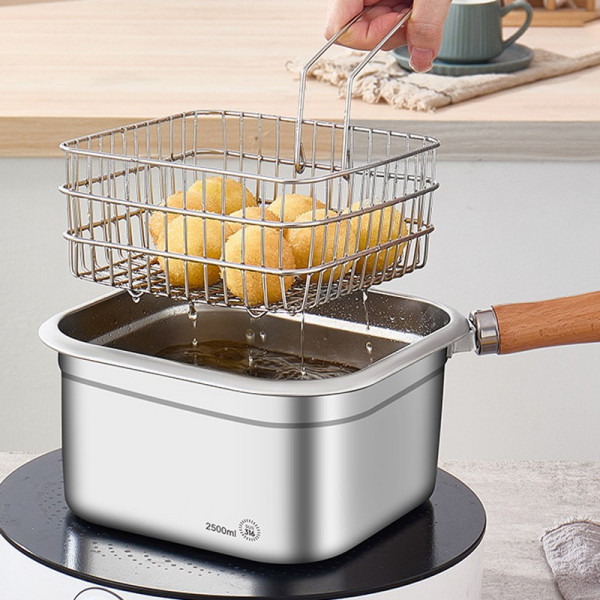 SMABAT 2 in 1 다용도 스텐 보관냄비 캠핑튀김기 스텐 밀폐용기 스텐 편수 냄비세트 튀김바스켓 집게 포함