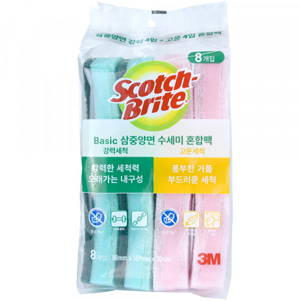 스카치브라이트 삼중양면 스펀지 수세미 혼합팩[8,290원]