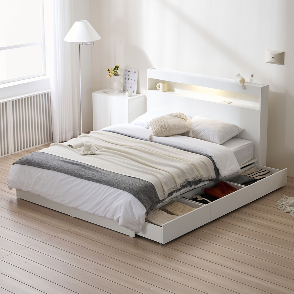 서울소호 트리플 LED 수납 침대프레임 + 파워 본넬 양면 퀸 매트리스 세트 방문설치