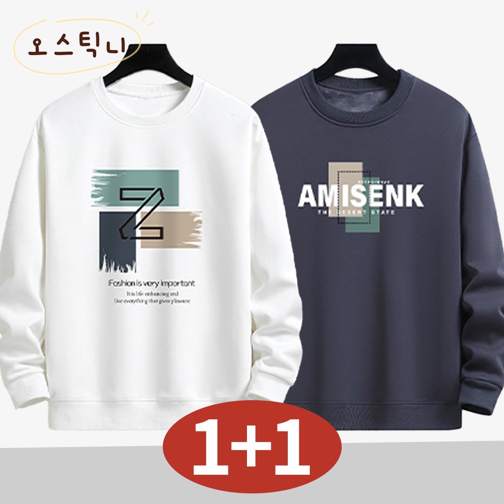 오스틱니 [1+1] 남성 봄가을 초특가 라운드넥 빅사이즈 트레이닝 맨투맨