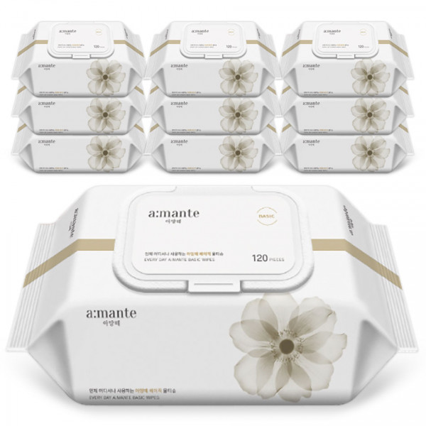 아망떼 베이직 엠보싱 물티슈 캡형 40gsm, 120매, 10개[11,780원]