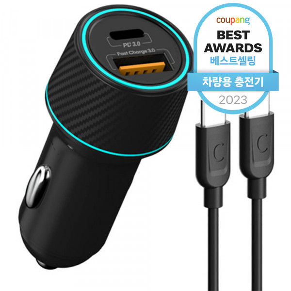 프라임큐 PD3.0 48W 2포트 고속 시거잭 차량용 충전기 + C to C 고속 케이블[11,880원]