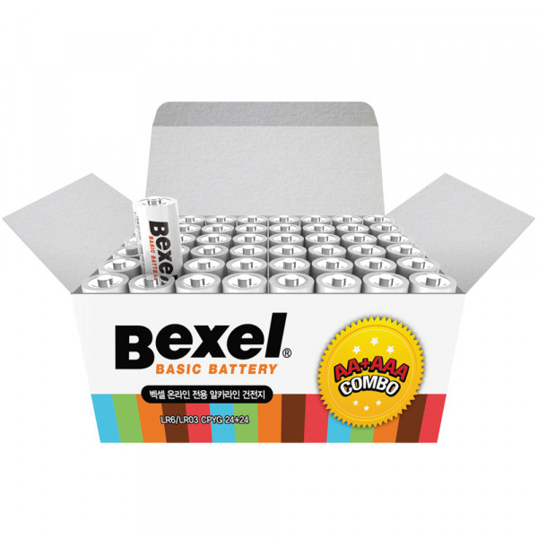 벡셀 알카라인 콤보팩 AA건전지 24p + AAA건전지 24p, 1세트, 48개입[14,340원]