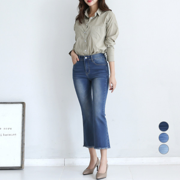 토마토팩토리 여성용 키작녀 워싱 부츠컷 청바지
