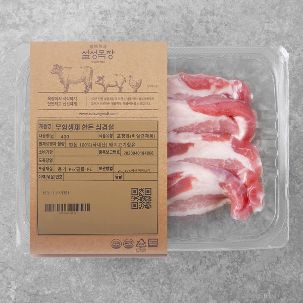 설성목장 한돈 무항생제 삼겹살 구이용 (냉장), 400g, 1개