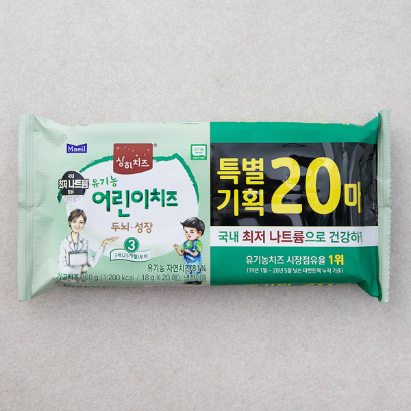 상하치즈 유기농 어린이치즈 20매 3STEP, 360g, 1개[11,750원]