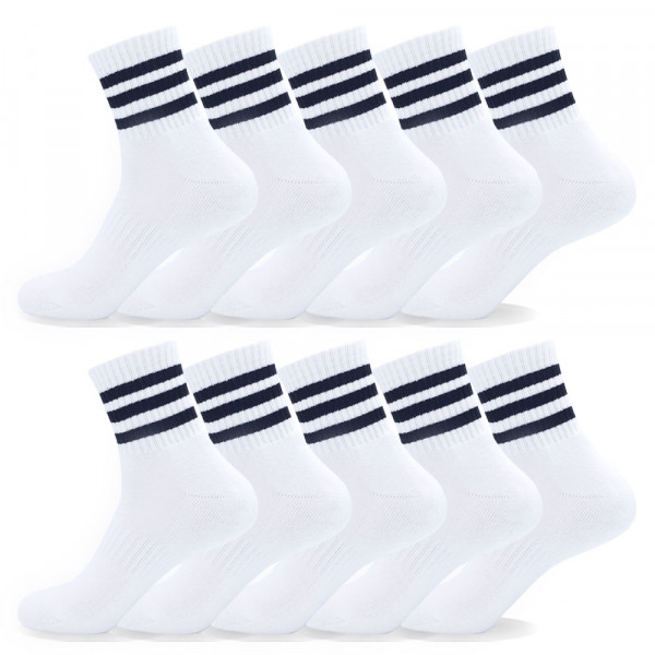 메가양말 로베르토 삼선 스포츠양말 중목 이중바닥 쿠션 국산고품질 10P, 화이트, 남성