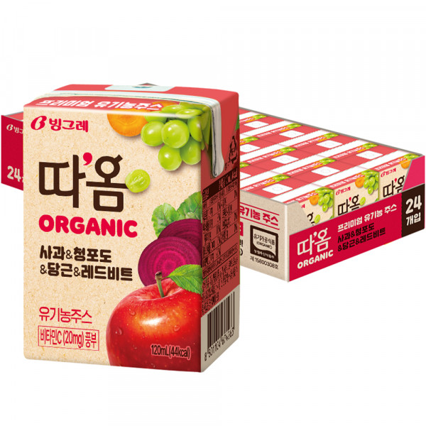 따옴 Organic 유기농 주스 사과 & 청포도 & 당근 & 레드비트, 120ml, 24개[12,480원]