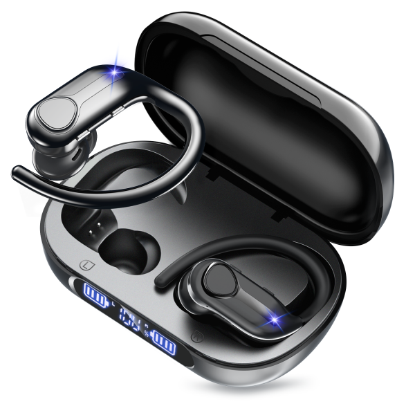 KONLI 귀걸이형 무선 블루투스 이어폰 노이즈 캔슬링 스포츠 방수 대용량 배터리 버튼식 S1, 블랙[17,900원]