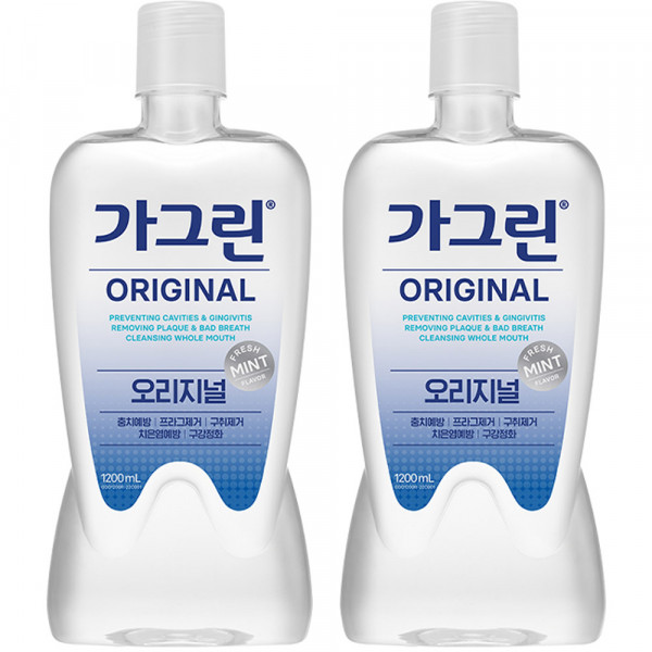 가그린 오리지널 구강청결제, 1.2L, 2개 특장점 입 냄새 제거를 돕는 구강청결제 입안을 깔끔하게 세정할 수 있는 액체 형태 치아 보호를 돕는 플루오린화 나트륨 성분 가그린 오리지널 구강청결제 를...