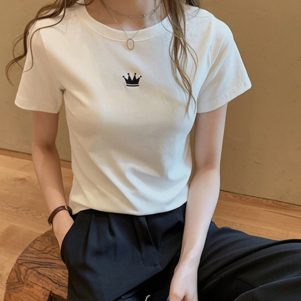 구디프 여성용 퀸크라운 라운드 반팔 기본 티셔츠