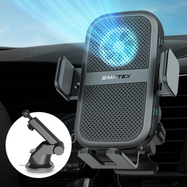 스마텍스 쿨링팬 15W Z플립 시리즈 호환 차량용 듀얼코일 고속 무선충전 핸드폰 거치대 송풍구클립 + 대시보드마운트 Set, 블랙, CI-43 구경하러가기