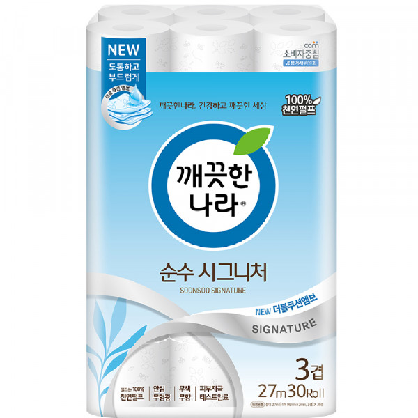 깨끗한나라 순수시그니처 천연펄프 화장지 27m, 30롤, 1개 구경하러가기