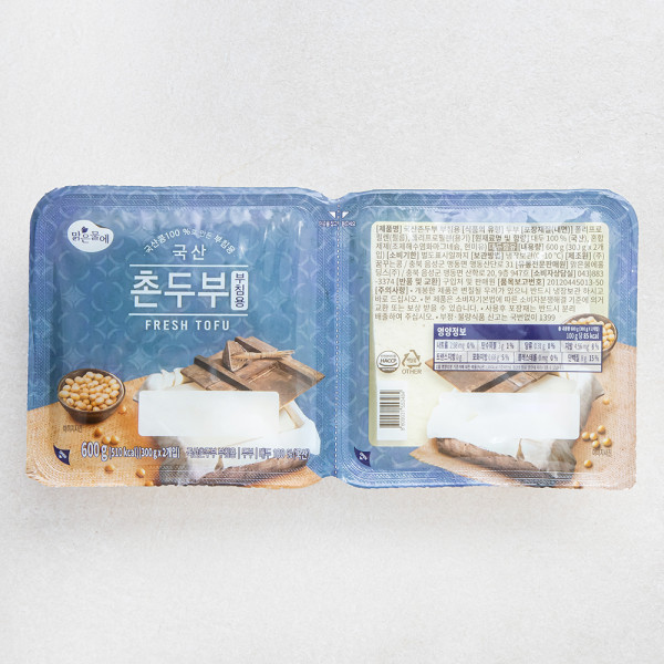 맑은물에 국산콩 100% 촌두부, 300g, 2개[4,120원]