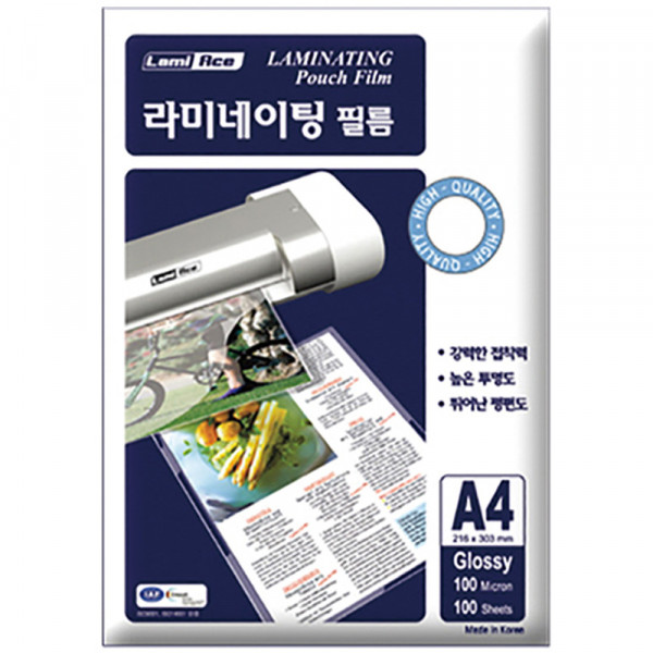 라미에이스 라미네이팅 필름 코팅지 100mic, A4, 100매[8,150원]
