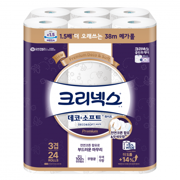 크리넥스 3겹 데코 앤 소프트 화이트 화장지 38m