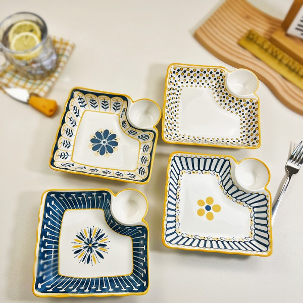 특징 7.5인치 직경의 다목적 만두 접시 4개 세트 믹스 컬러 북유럽 스타일의 도자기 소재... 6,900원 BLOWFISHFUGU 북유럽접시 도자기 손잡이 앞접시2p/4p 스테이크접시 홈식기 세트, A+B+C+D, 4개...