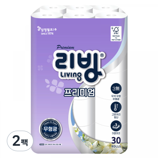 리빙 프리미엄 롤화장지 30m, 30롤, 2팩