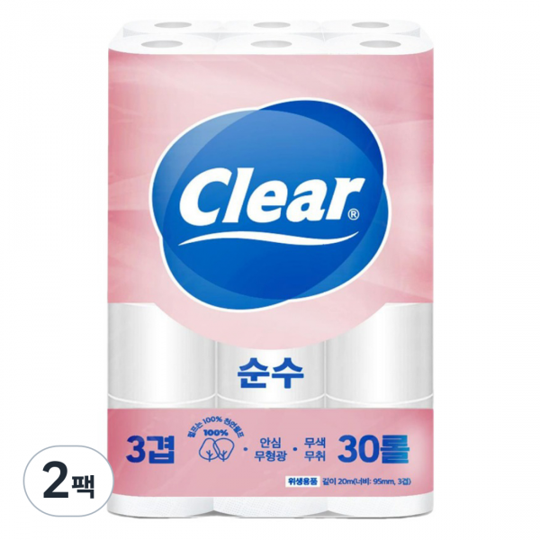 클리어 순수 천연펄프 3겹 화장지 20m, 30개입, 2개[13,520원]