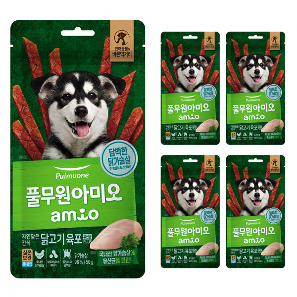 아미오 자연담은 간식 닭고기 육포 유산균 PLUS, 유산균 담은 닭가슴살, 50g, 5개[16,040원]