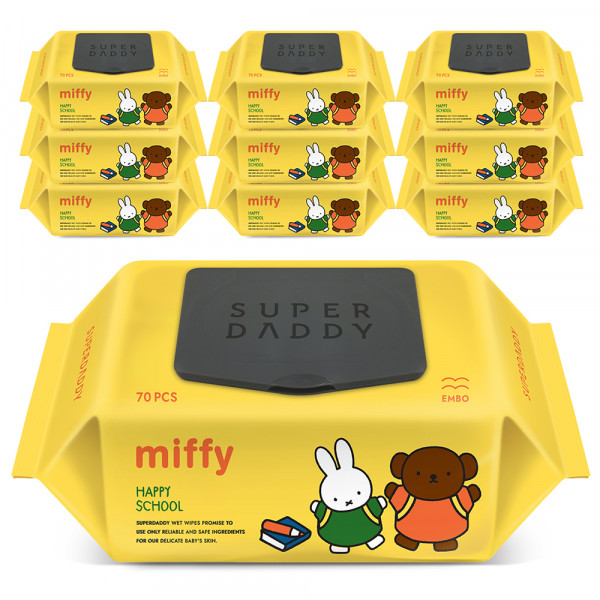 슈퍼대디 유아용 미피 해피스쿨 물티슈 캡형, 70g, 70매, 10팩