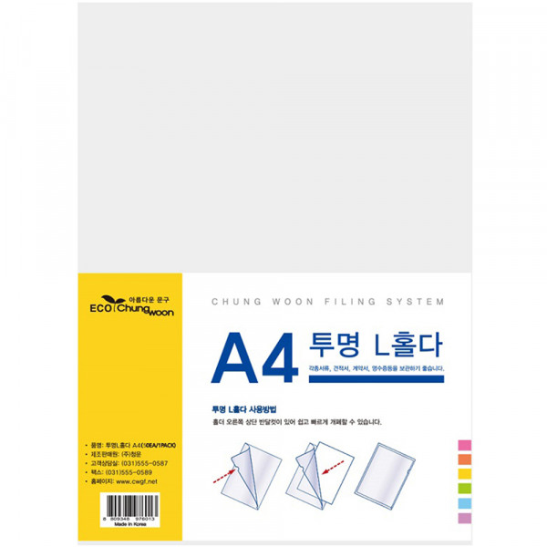 에코청운 L자 홀더 파일 A4, 투명, 50개입[7,650원]